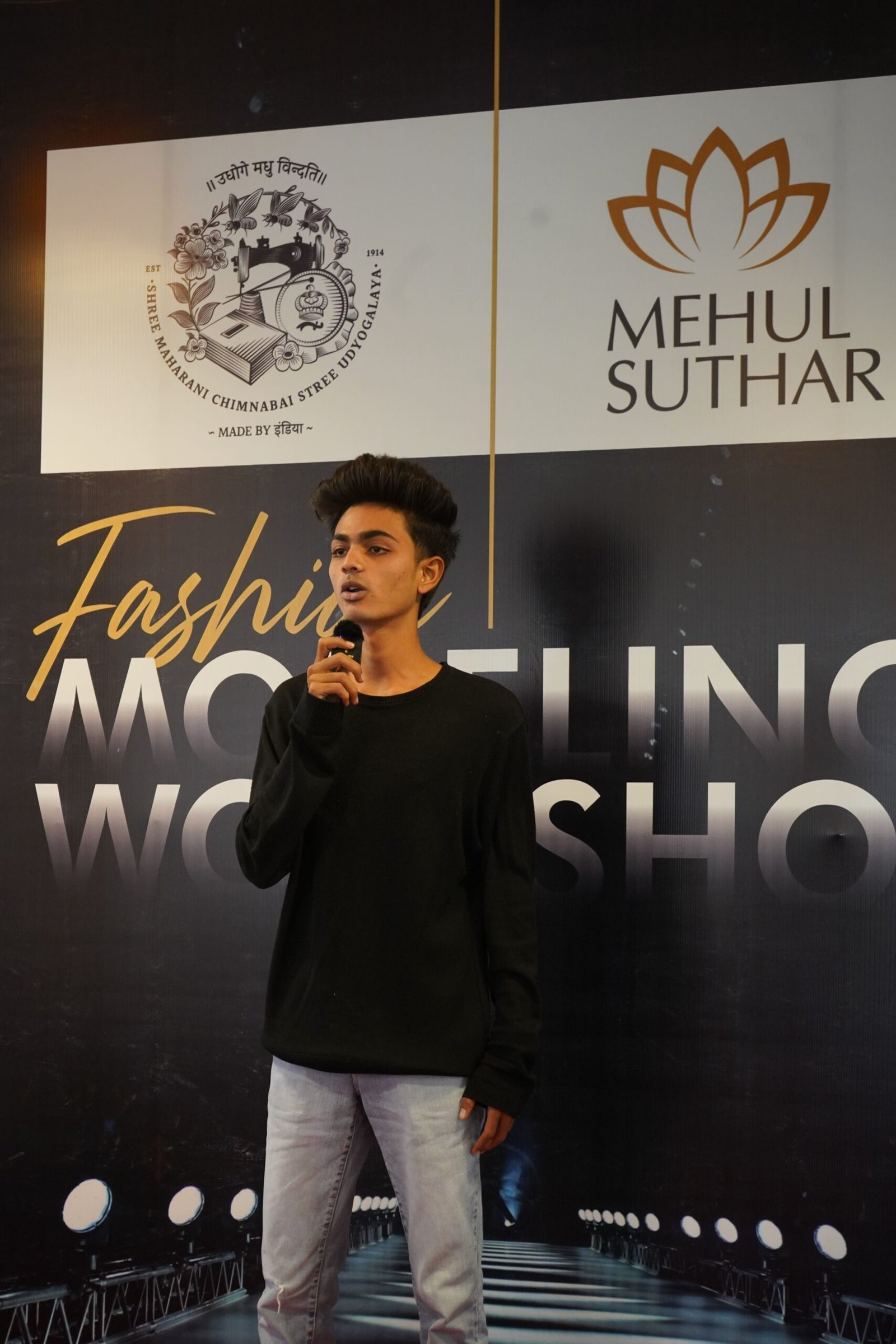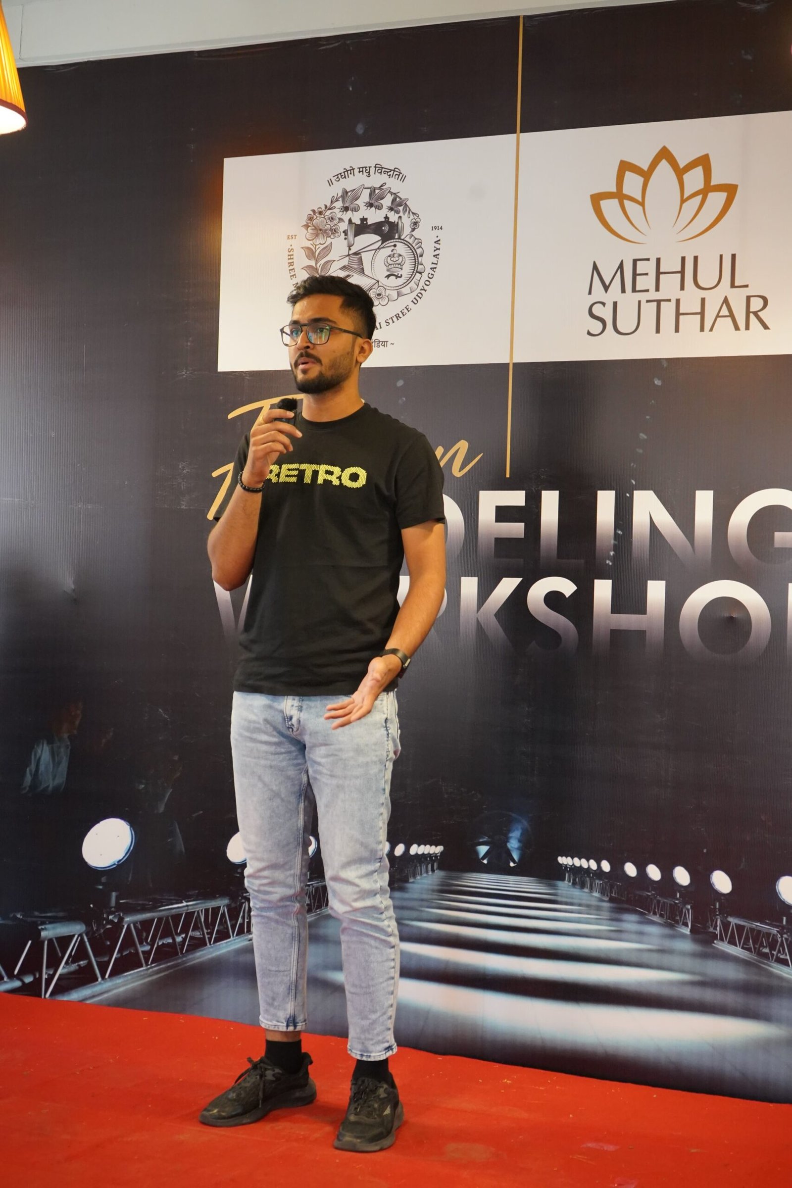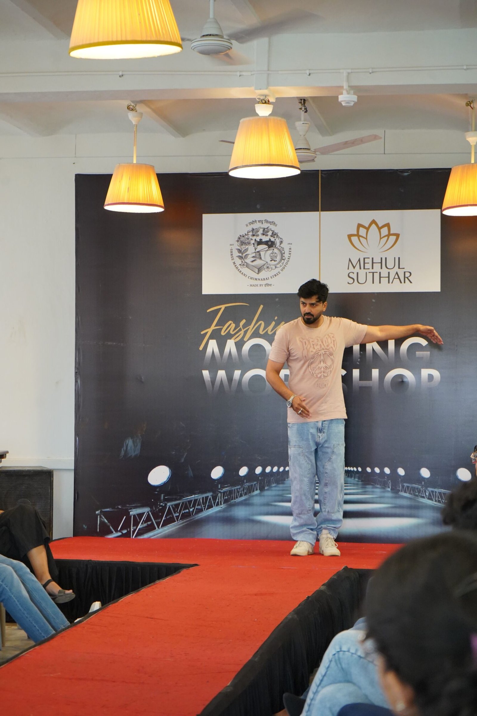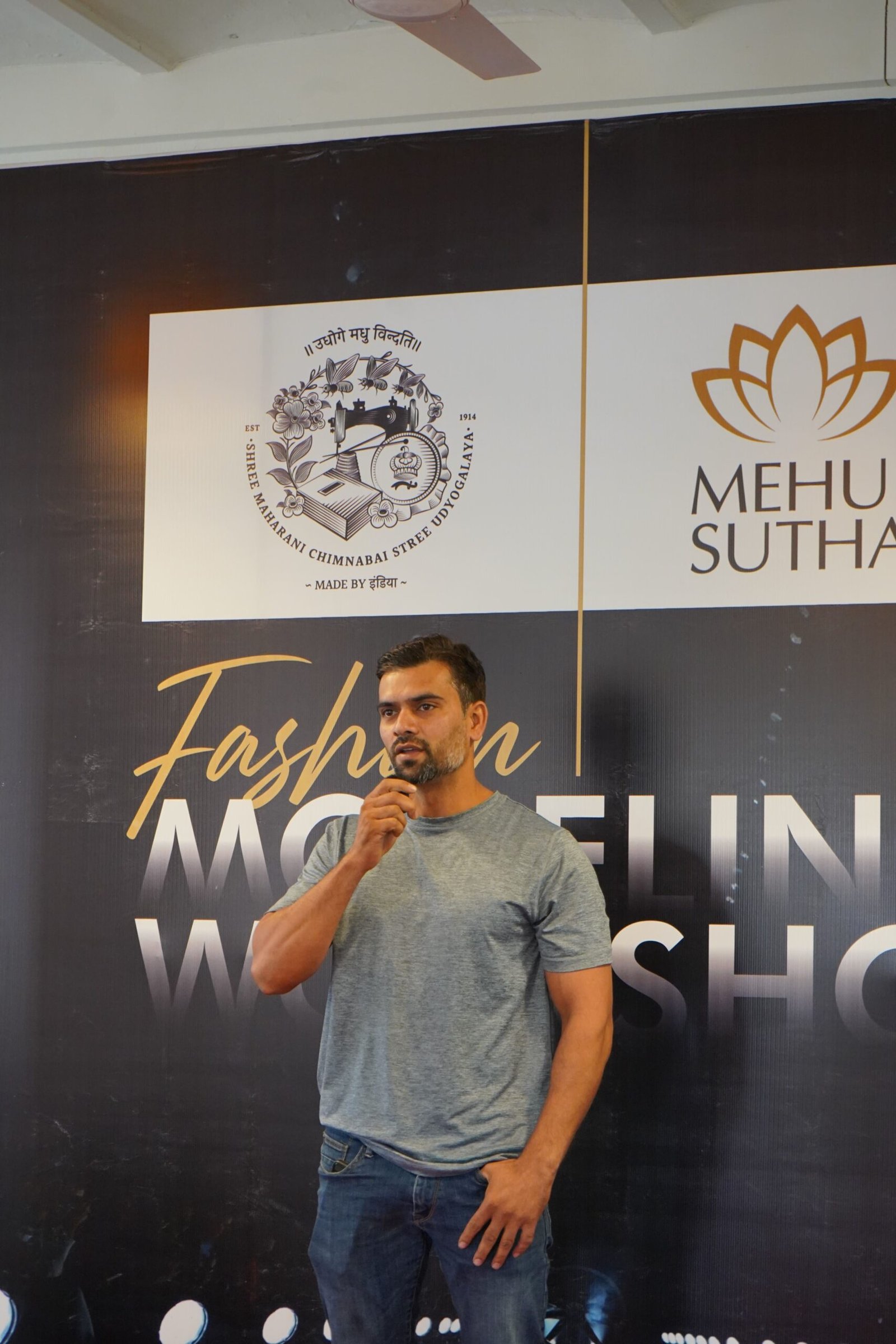 In 2024, renowned fashion expert and mentor Mehul Suthar successfully co-organized the Second Edition of the Fashion Modeling Workshop in collaboration with Shri Maharani Chimnabai Stree Udyogalaya, Vadodara.